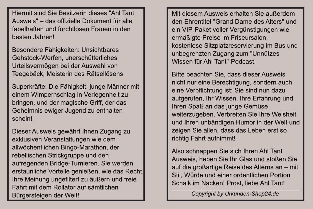 Überraschen Sie eine Ahl Tant Ihrer Wahl, mit diesem schönen Ausweis.