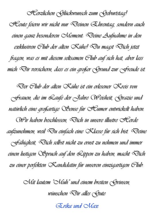 Heute feiern wir nicht nur Deinen Ehrentag, sondern auch einen ganz besonderen Moment: Deine Aufnahme in den exklusiven Club der alten Kühe! Du magst Dich jetzt fragen, was es mit diesem seltsamen Club auf sich hat, aber lass mich Dir versichern, dass es ein großer Grund zur Freude ist.