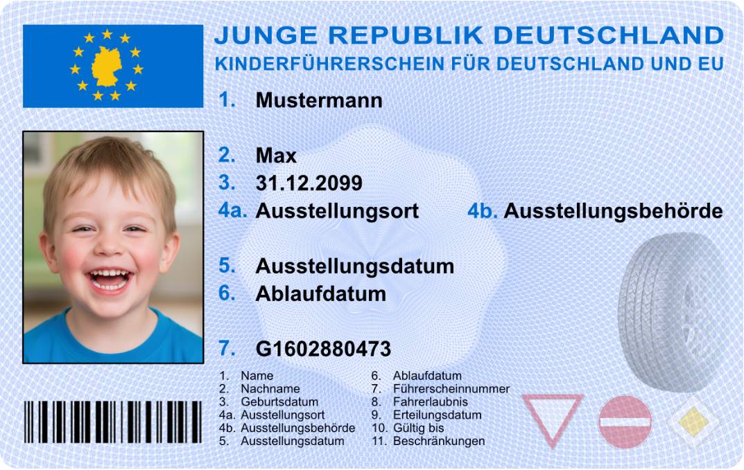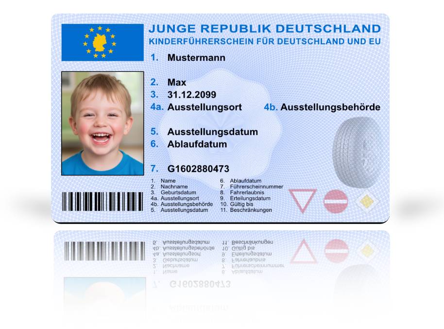 Kinderführerschein für einen Jungen als hochwertige Plastikkarte