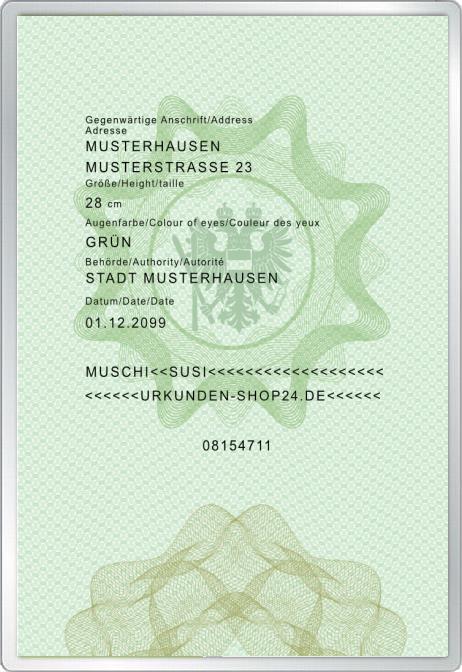 Jedes Exemplar ist ein Unikat: Wir fertigen den Ausweis einzeln nach Ihren Angaben inklusive Wunschfoto an. Dank der robusten Laminierung ist der Spaß-Ausweis vor Schmutz geschützt und absolut wasserfest.
