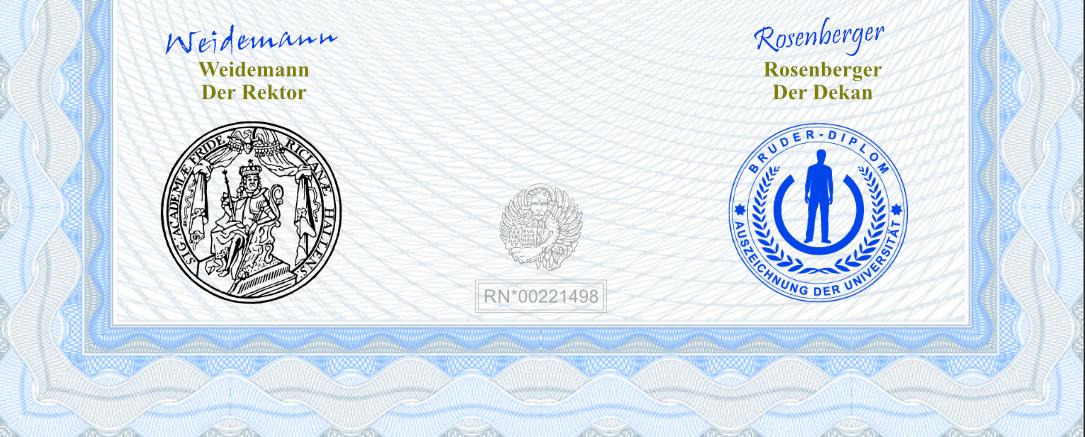 Es handelt sich hierbei nur um eine Spaßurkunde, die nicht zum Tragen irgendeines Titels, akademischen Grad oder eines bestimmten Berufsstands berechtigt!