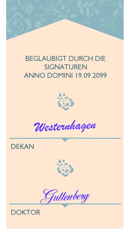 Sie können sogar die Namen der Aussteller (Doktor und Dekan) selbst bestimmen.